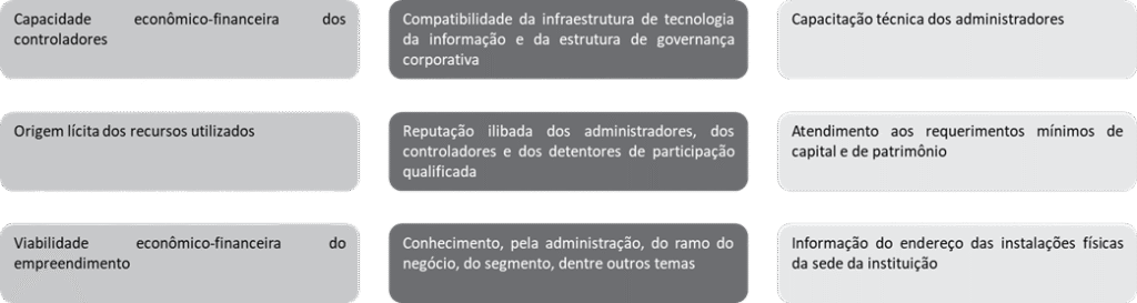 Em linhas gerais, o BCB analisará no âmbito dos processos de autorização de funcionamento das SPSAVs os mesmos requisitos atualmente exigidos de CTVMs, DTVMs e SCCs, conforme resumidos abaixo: