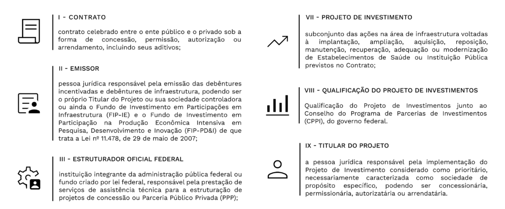 Para mais informações sobre os critérios para enquadramento dos projetos de infraestrutura prioritários e requisitos para utilização do benefício, consulte nossos Informas Publicado Decreto que regulamenta as Novas Debêntures de Infraestrutura, as Debêntures Incentivadas e os Bonds Incentivados e As Novas Debêntures de Infraestrutura, os Bonds Incentivados e alterações às Debêntures Incentivadas.
